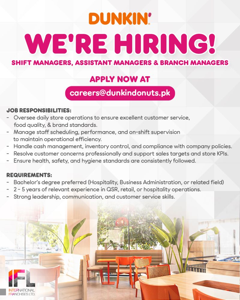 International Franchises (Pvt.) Ltd. is expanding its team and seeking talented professionals for the following roles: