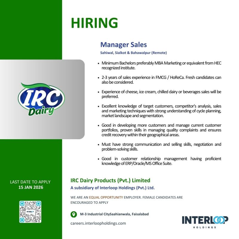 Hiring Now– Manager Sales | IRC Dairy Products (Pvt.) Limited