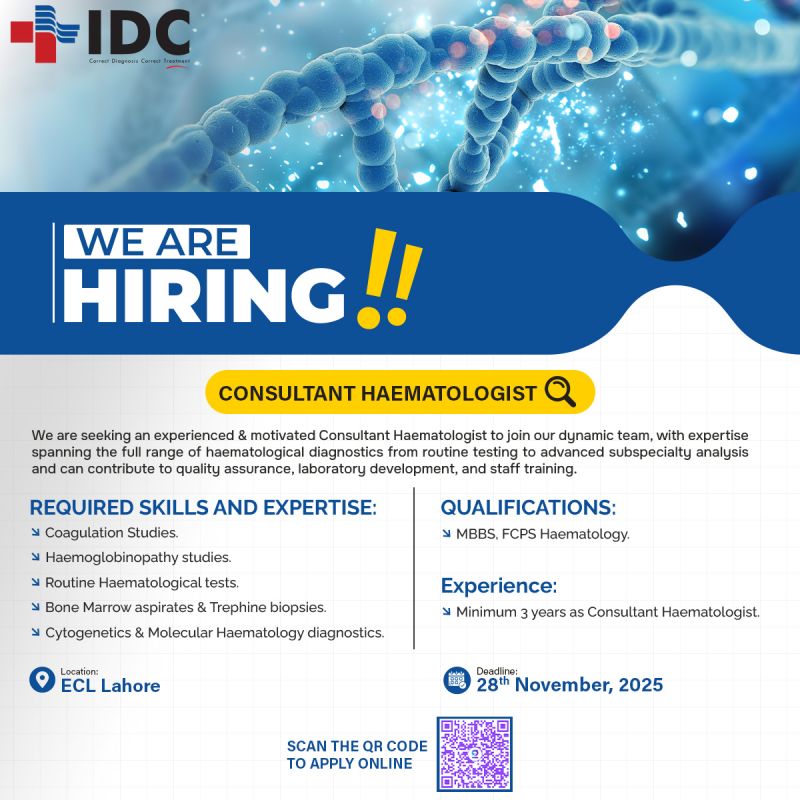 Islamabad Diagnostic Center IDC Jobs Consultant Haematologist
