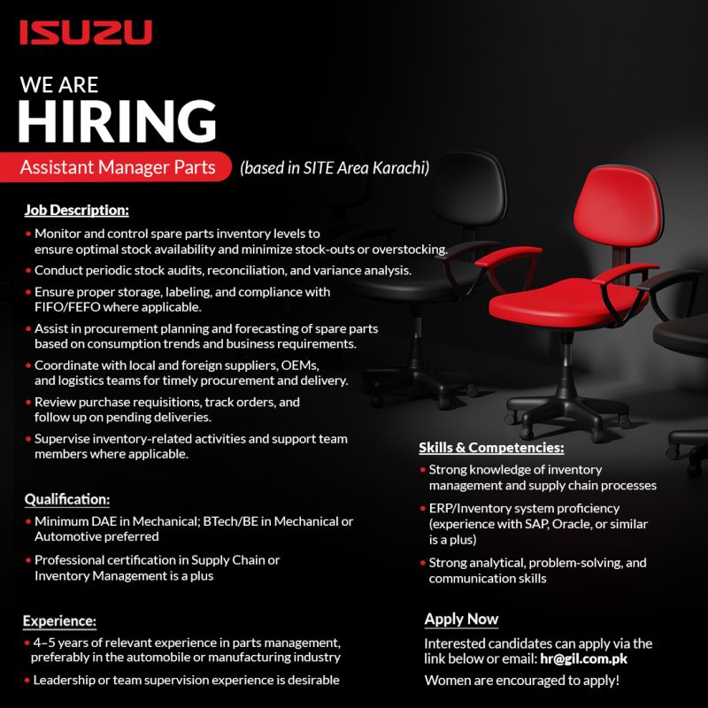 ISUZU Ghandhara Industries Limited Jobs Assistant Manager Parts