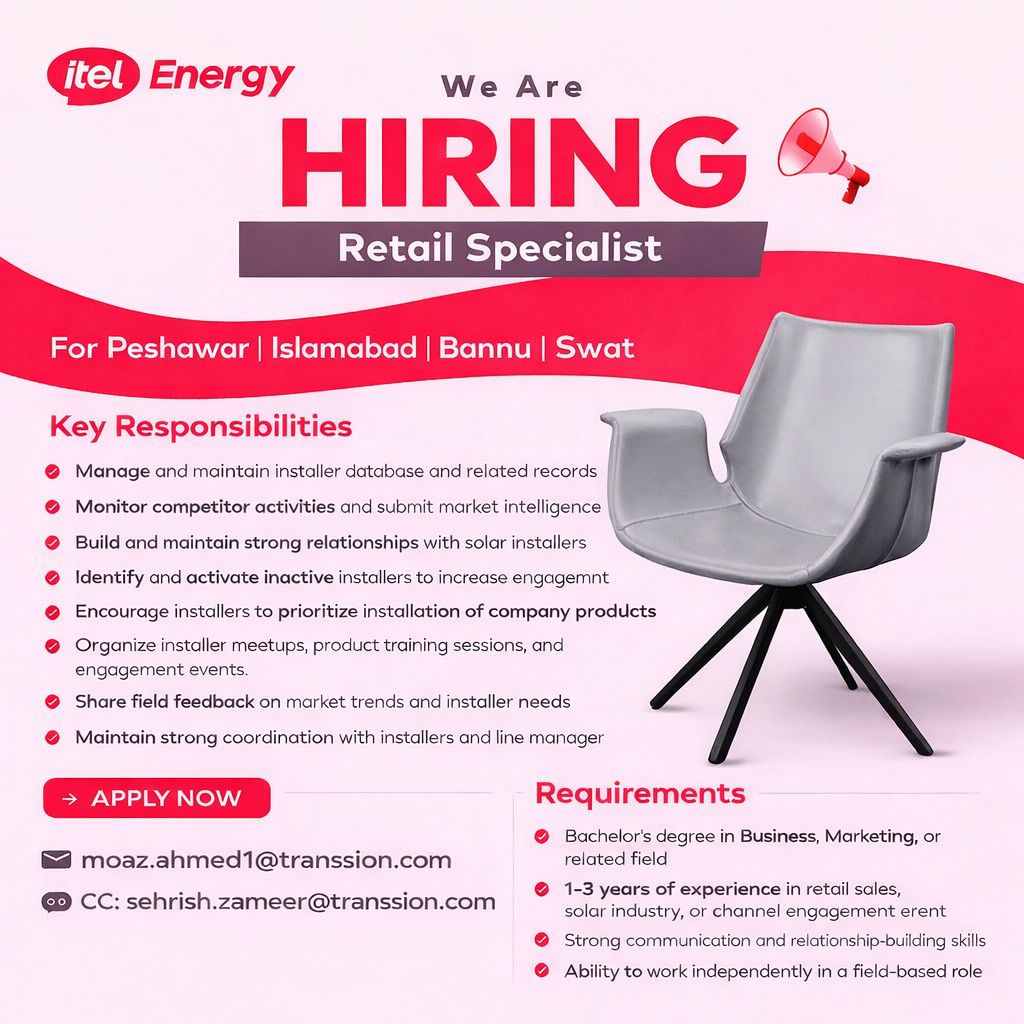 𝗪𝗲 𝗮𝗿𝗲 𝗛𝗶𝗿𝗶𝗻𝗴 𝗮𝘁 𝗶𝘁𝗲𝗹 𝗘𝗻𝗲𝗿𝗴𝘆 – Retail Specialist (Solar Industry)