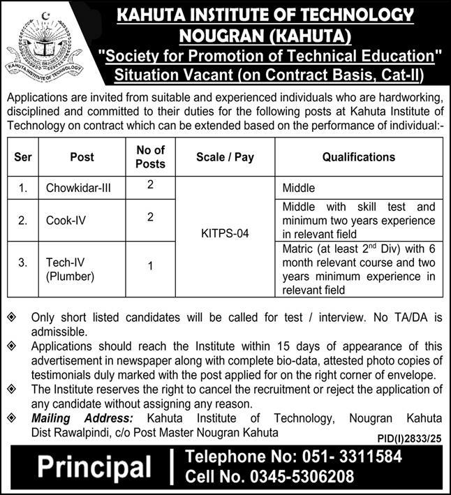Kahuta Institute of Technology Nougran Jobs October 2025