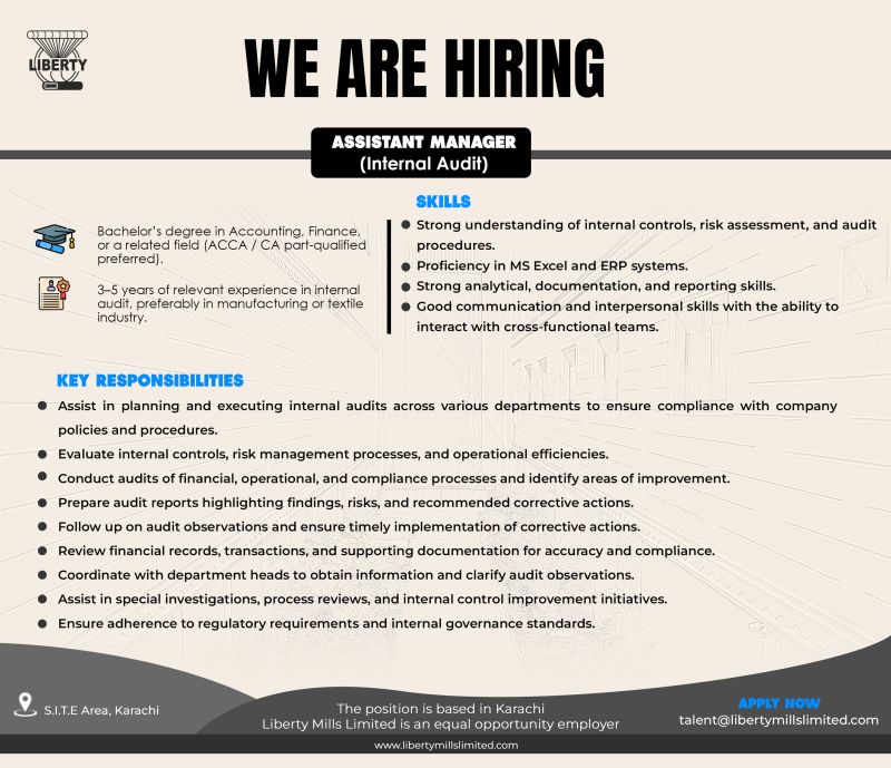 Liberty Mills Limited Jobs Assistant Manager (Internal Audit)
