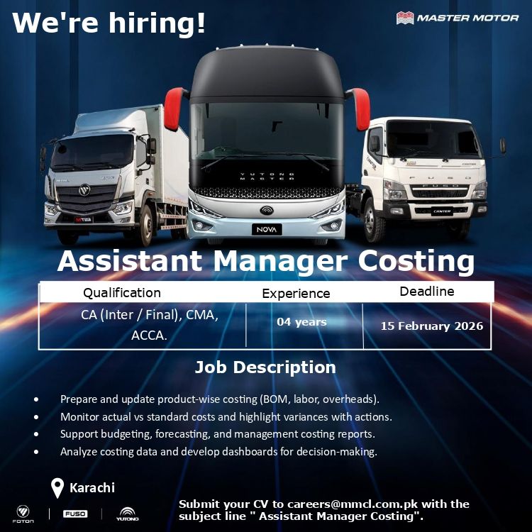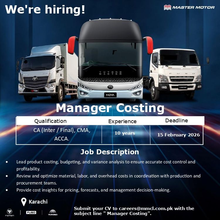 Position: Manager Costing Location: Karachi
