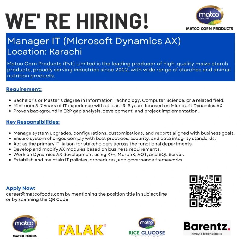 We’re looking for an experienced Manager IT (Microsoft Dynamics AX) to drive ERP excellence, ensure system integrity, and align technology with business strategy.