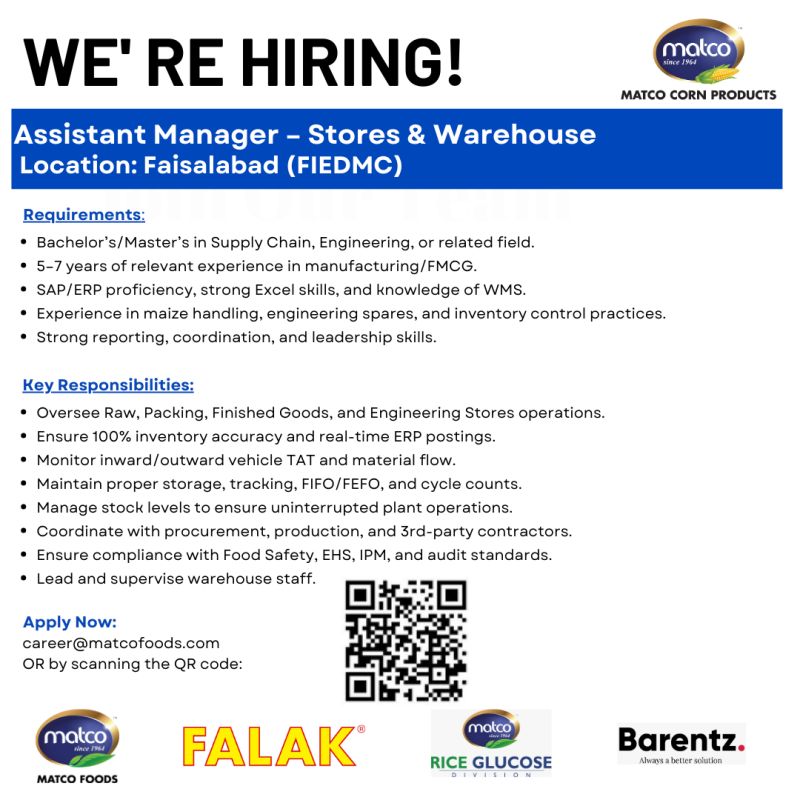 We’re Hiring – Assistant Manager Stores & Warehouse!