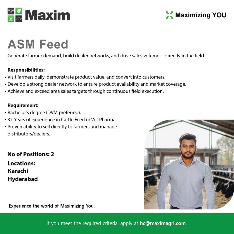 Maxim Agri is looking for candidates for the position of Area Sales Manager for the Feed business.