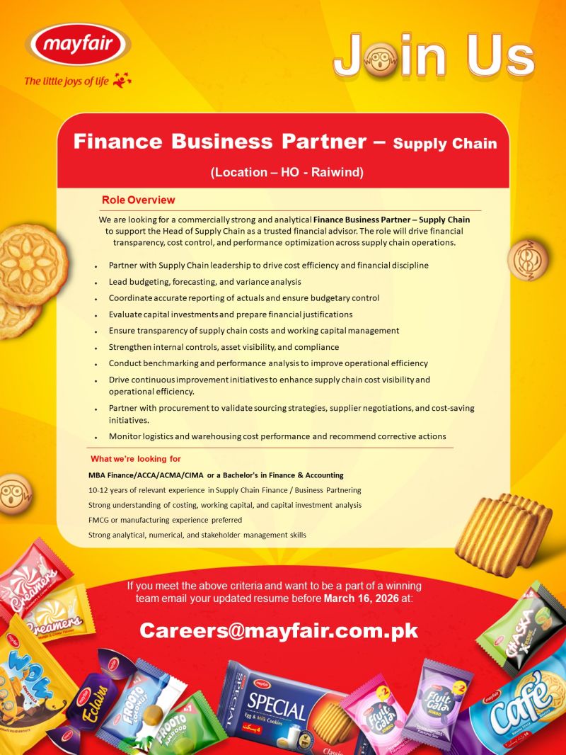 Position: Finance Business Partner – Supply Chain (Location – HO – Raiwind)