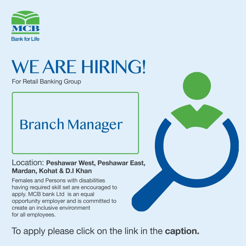 Are you looking for a career in one of Pakistan’s leading Banks? The Retail Banking Group of MCB Bank is looking for Branch Manager to join its team of talented, motivated and highly skilled professionals.