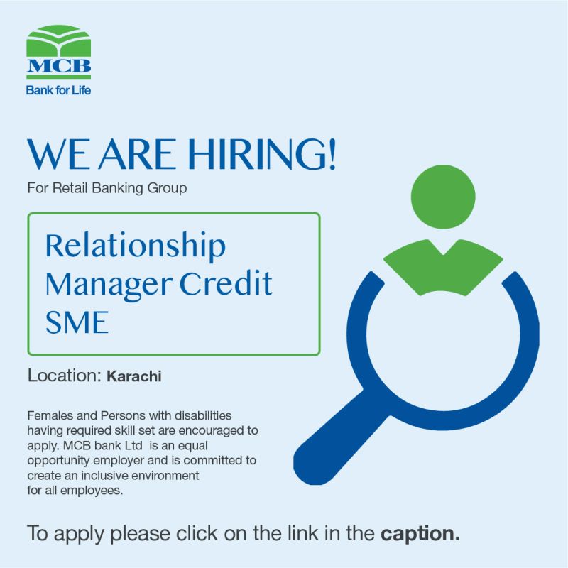 Are you looking for a career in one of Pakistan’s leading Banks? The Retail Banking Group of MCB Bank is looking for Relationship Manager Credit SME to join its team of talented, motivated and highly skilled professionals.