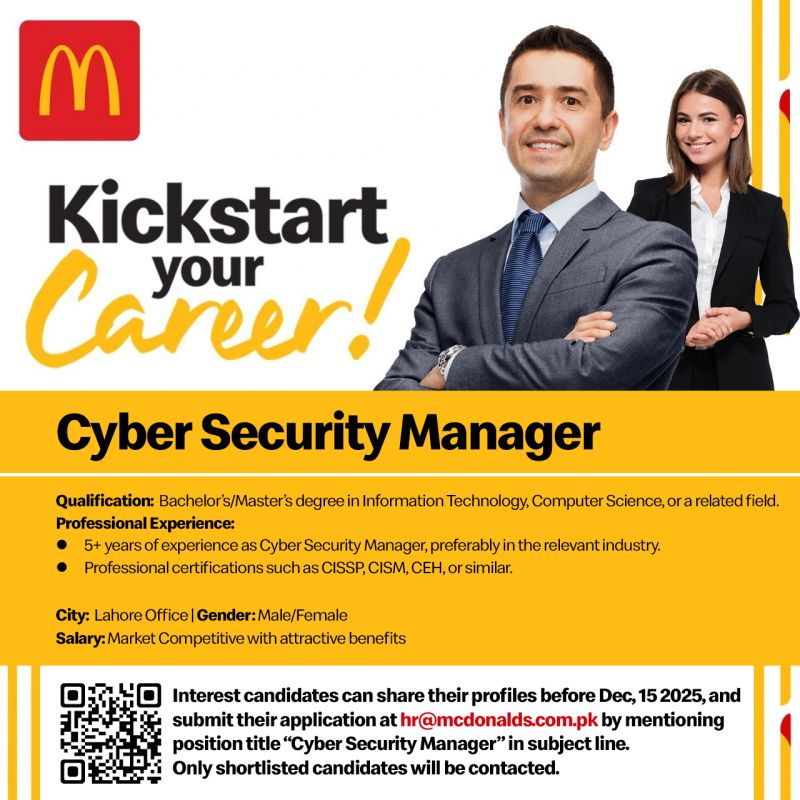 McDonald’s Pakistan Jobs Cyber Security Manager :