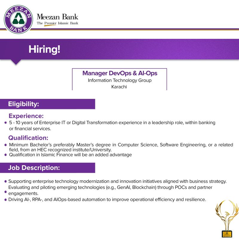 Meezan Bank Limited Jobs Manager DevOps & AI-Ops 1