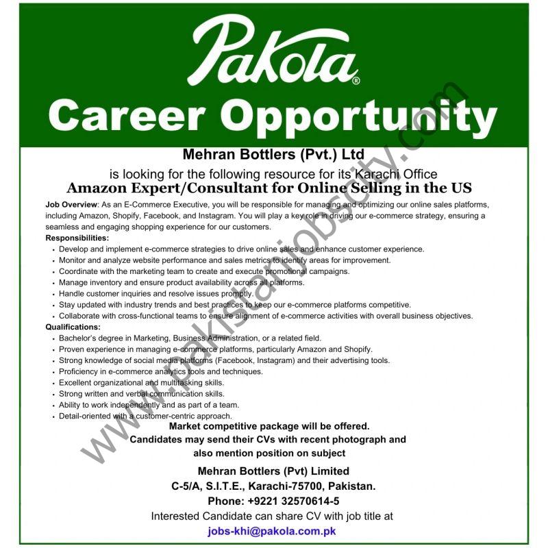Mehran Bottlers Pvt Ltd Pakola Jobs Amazon Expert / Consultant