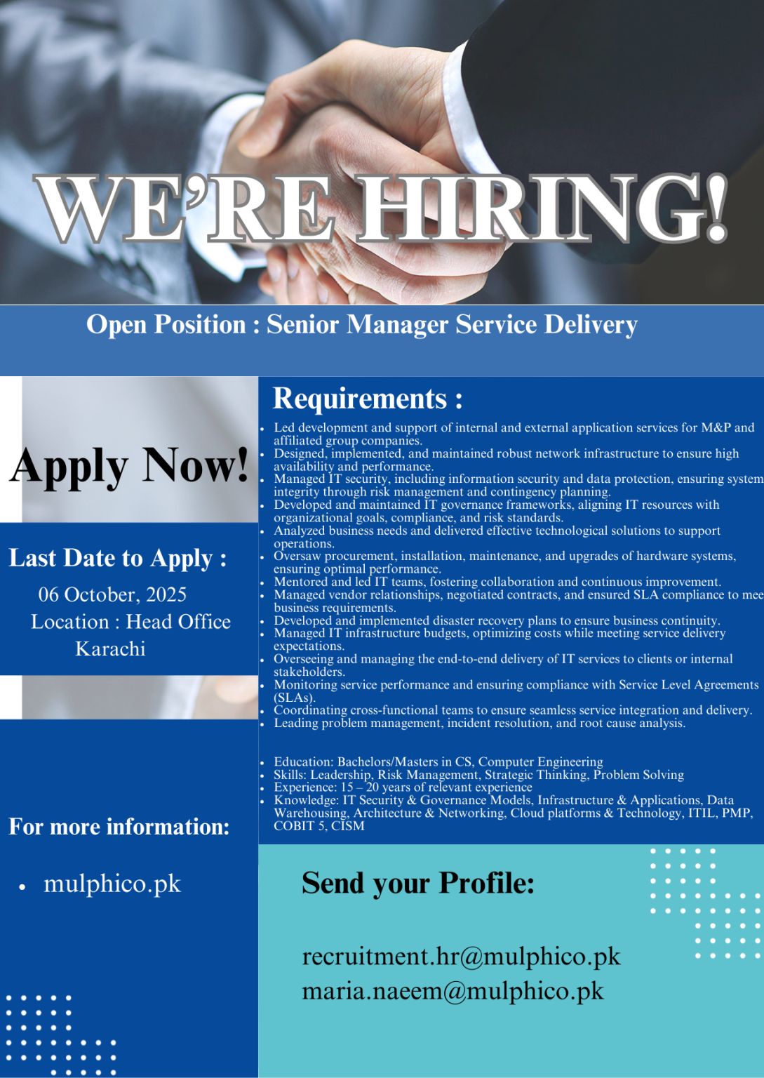 Muller & Phipps Pakistan Pvt Ltd Jobs Senior Manager Service Delivery 1