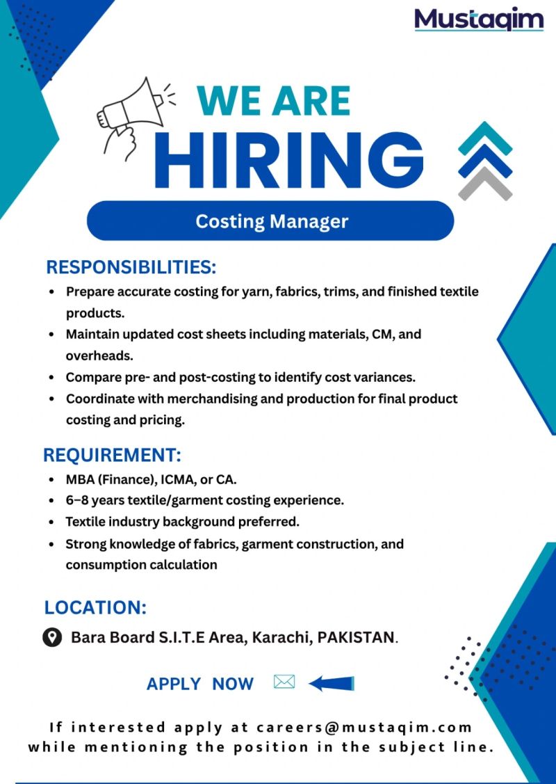 Mustaqim Dyeing & Printing Jobs Costing Manager: