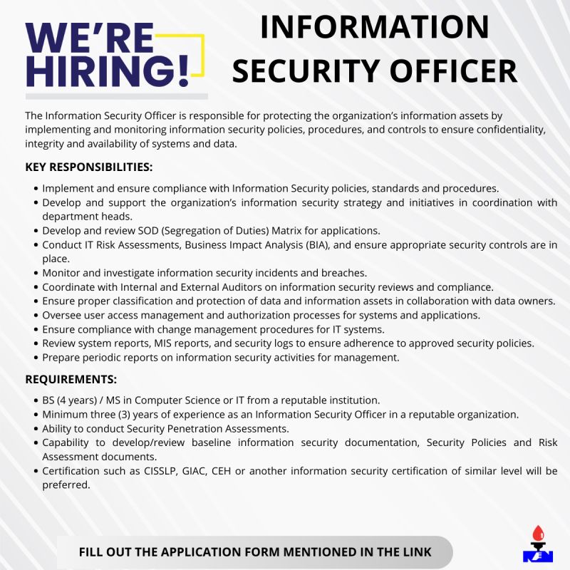 If you are passionate about safeguarding digital assets, strengthening cybersecurity frameworks, and contributing to a secure and resilient IT environment, this is your chance to be part of a dynamic organization in Pakistan’s energy sector.