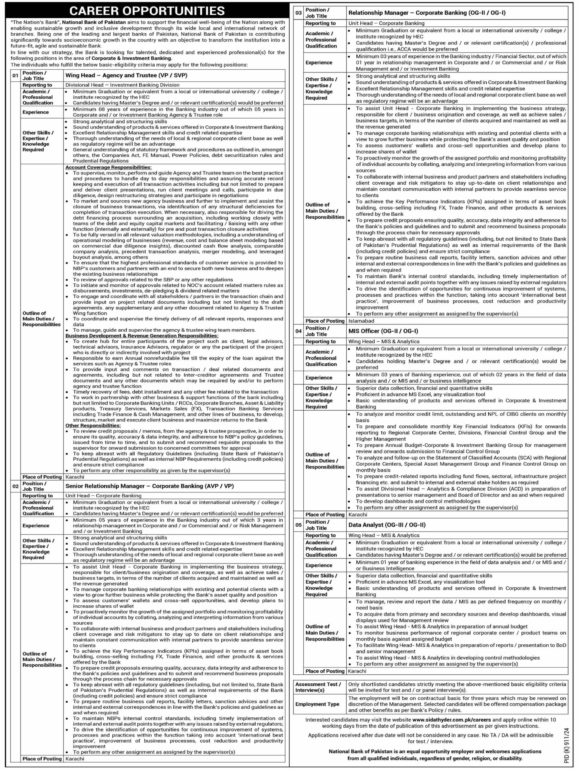 - Please apply online within 10 working days from the date of publication of this advertisement at www.nbp.com.pk/careers
