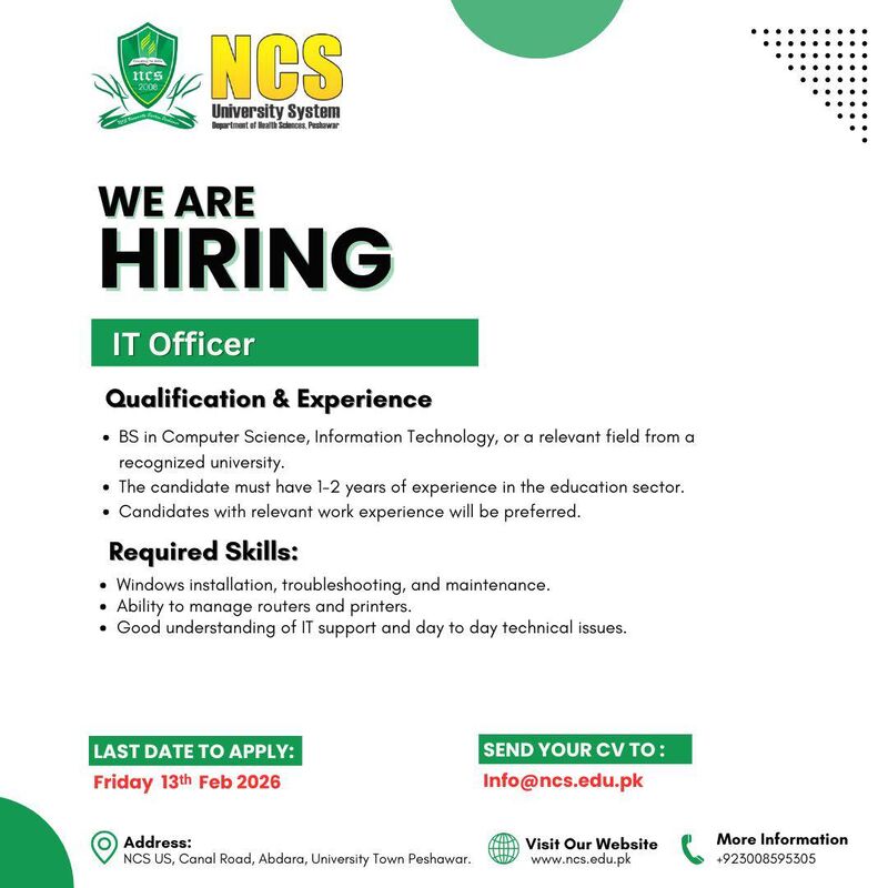 - Address: NCS US, Canal Road, Abdara, University Town Peshawar.
