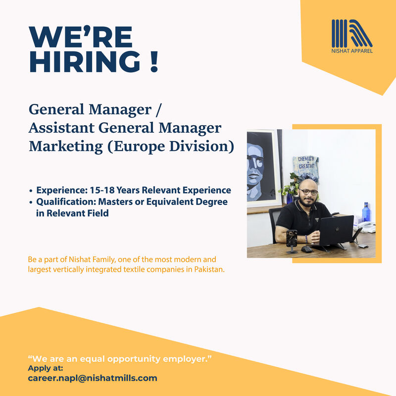 Nishat Apparel Pvt Ltd Jobs General Manager / Assistant General Manager Marketing: