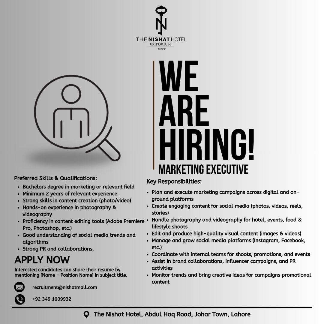 Nishat Hotels Jobs Creative Content & Marketing Executive 1
