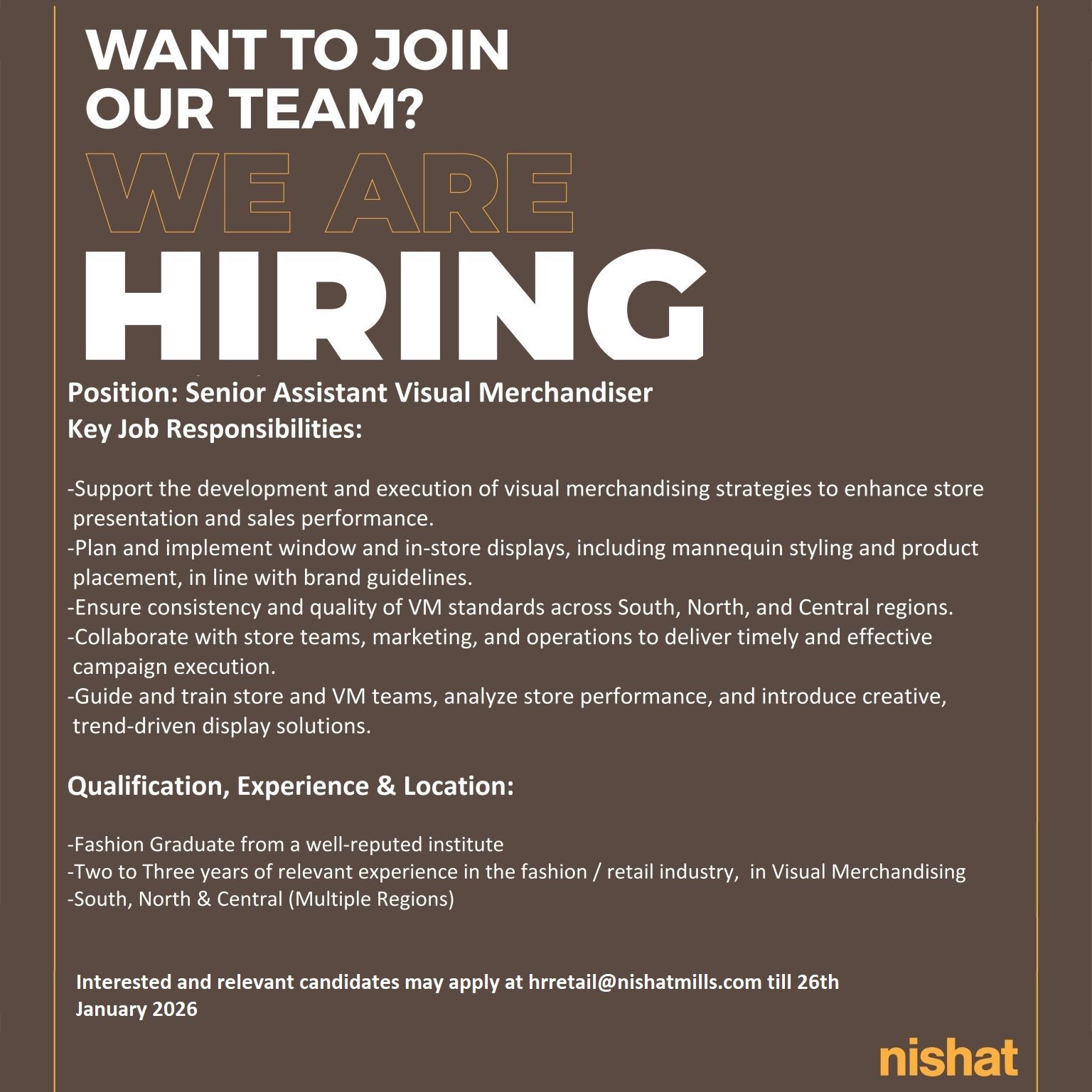 Nishat Linen Jobs Senior Assistant Visual Merchandiser