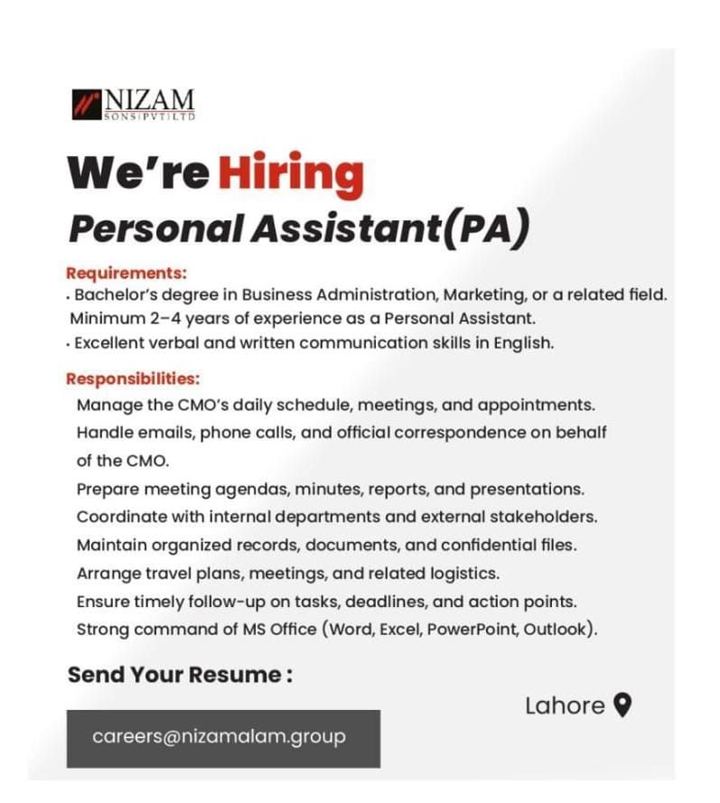 Nizam Sons Pvt Ltd Jobs Personal Assistant PA