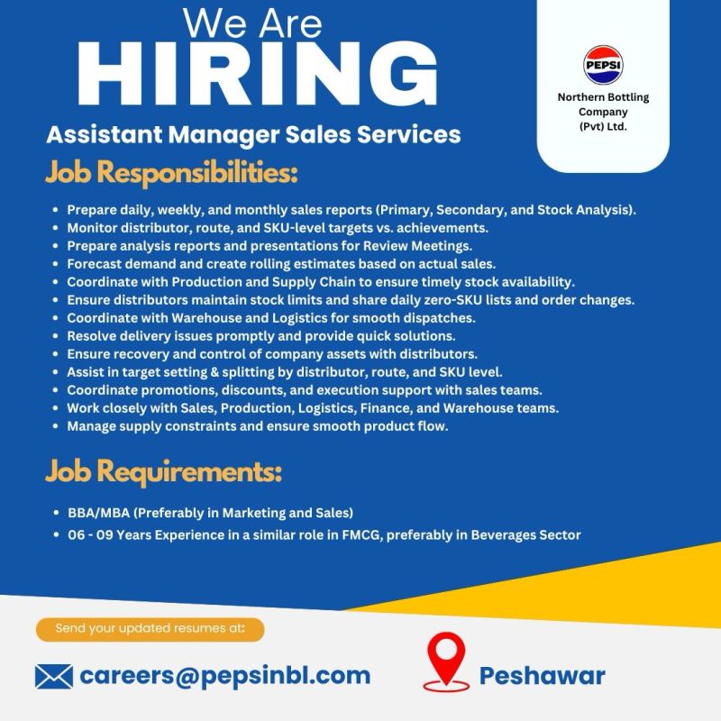 Position: Assistant Manager Sales Services Location: Peshawar