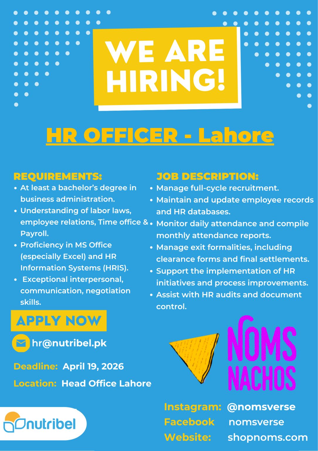 Nutribel Pvt Ltd Jobs HR Officer