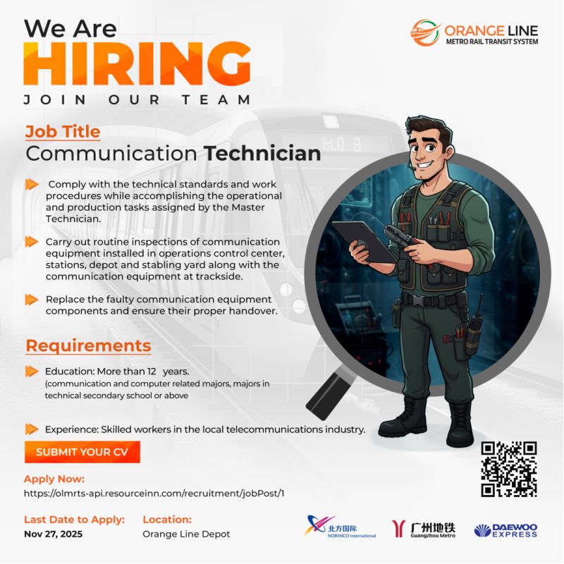 Orange Line Metro Rail Transit System (OLMRTS) Jobs Communication Technician