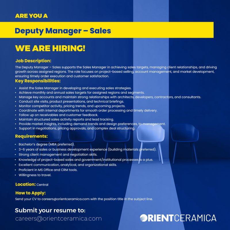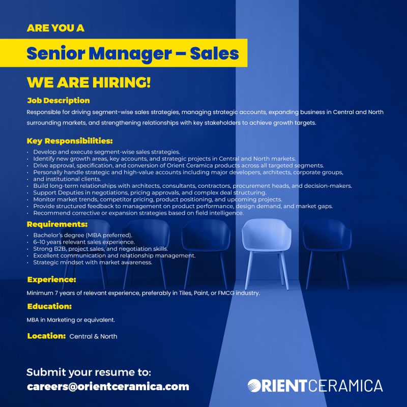 Orient Ceramica is expanding its Corporate Sales Department and is looking for energetic, result-oriented professionals to join our growing sales team.