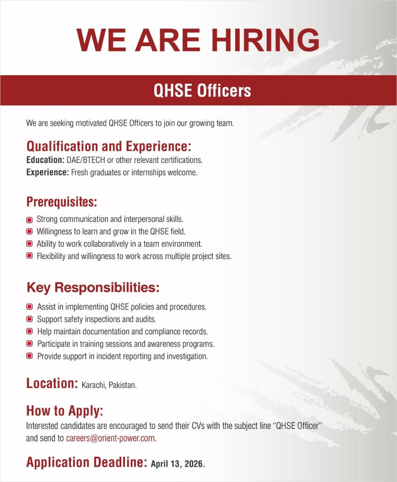 How to Apply: Interested candidates are encouraged to send their CVs with the subject line “QHSE Officer” and send to [email protected].