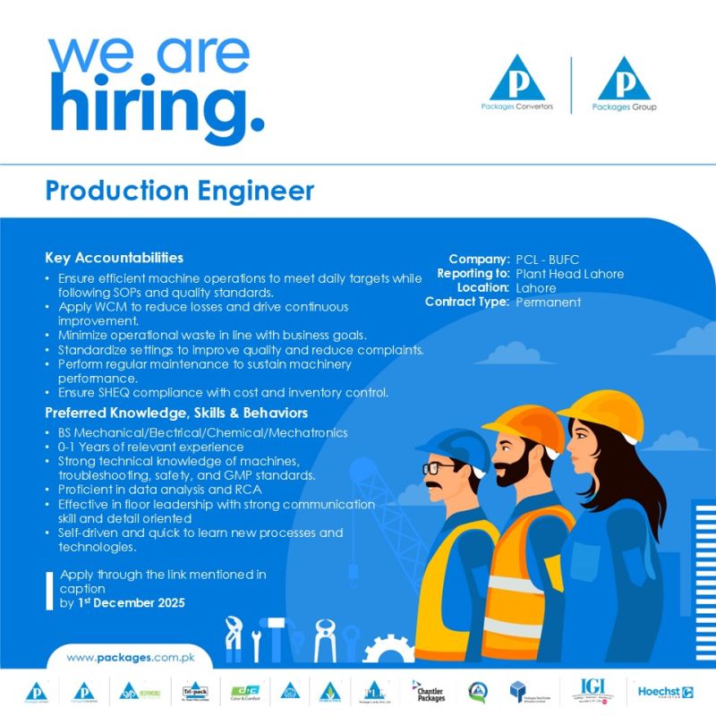 Company: PCL – BUFC Reporting to: Plant Head Lahore Location: Lahore Contract Type: Permanent