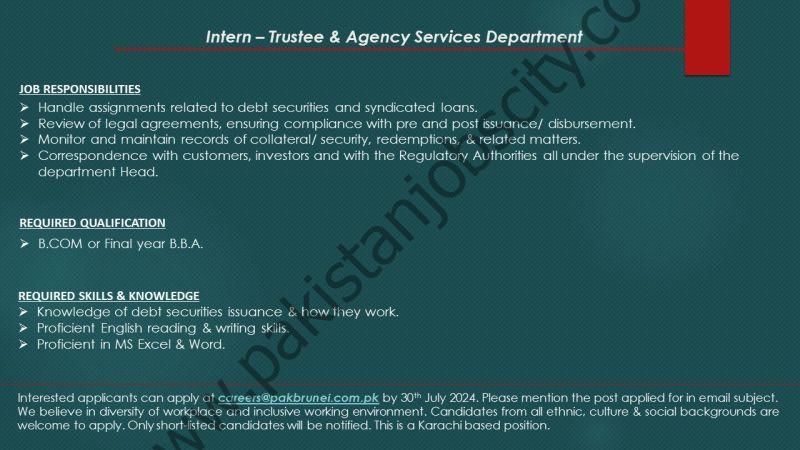Pak Brunei Investment Company Limited invites candidates to apply for an Internship in our Trustee & Agency Services Department.