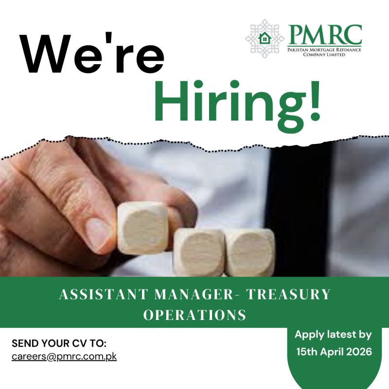 Pakistan Mortgage Refinance Company PMRC Jobs Assistant Manager Treasury Operations