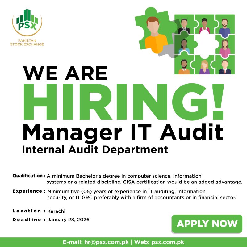 Pakistan Stock Exchange PSX Jobs Manager IT Audit 1