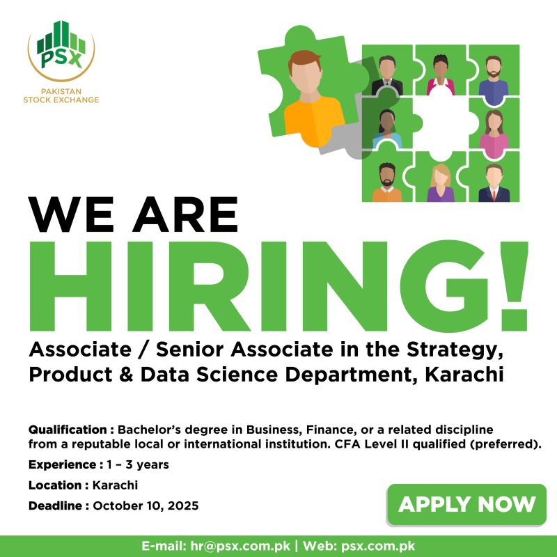 PSX is looking for a qualified and driven individual for the position of Associate / Senior Associate in the Strategy, Product & Data Science Department, based at the Head Office in Karachi.