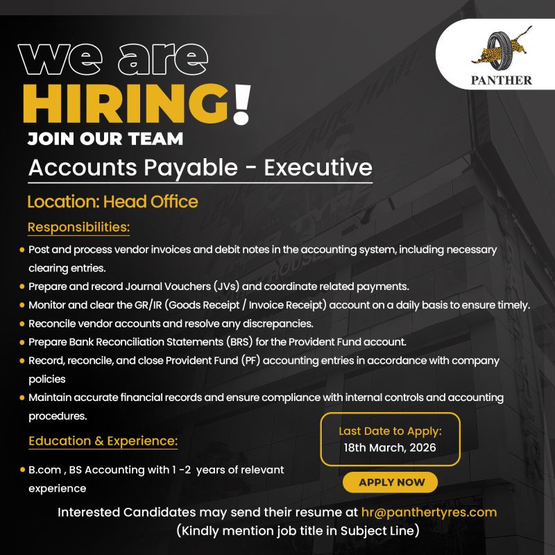Panther Tyres Limited Jobs Accounts Payable Executive :