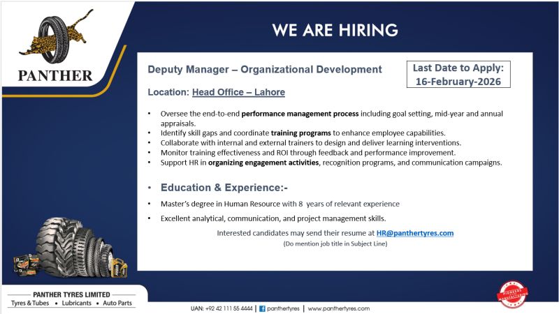 Panther Tyres Limited Jobs Deputy Manager Organizational Development