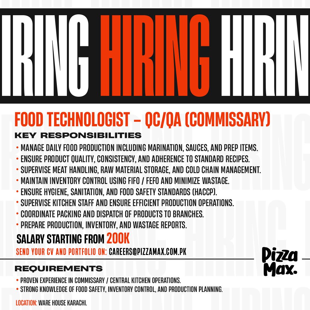 FOOD TECHNOLOGIST – QC/QA (COMMISSARY)