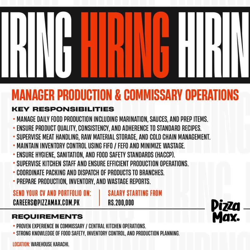 Pizza Max Pakistan Jobs Manager Production & Commissary Operations