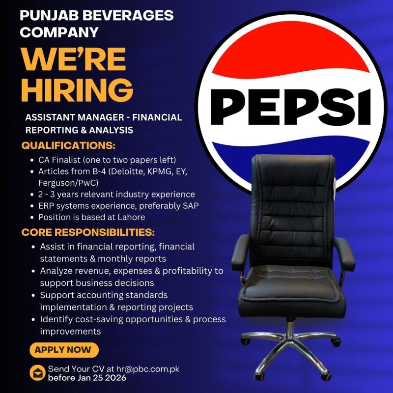 Punjab Beverages Company Jobs Assistant Manager Financial Reporting & Analysis: