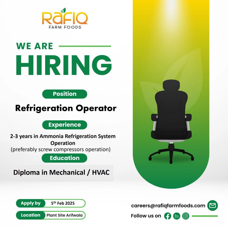 Rafiq FARM FOODS Jobs Refrigeration Operator: