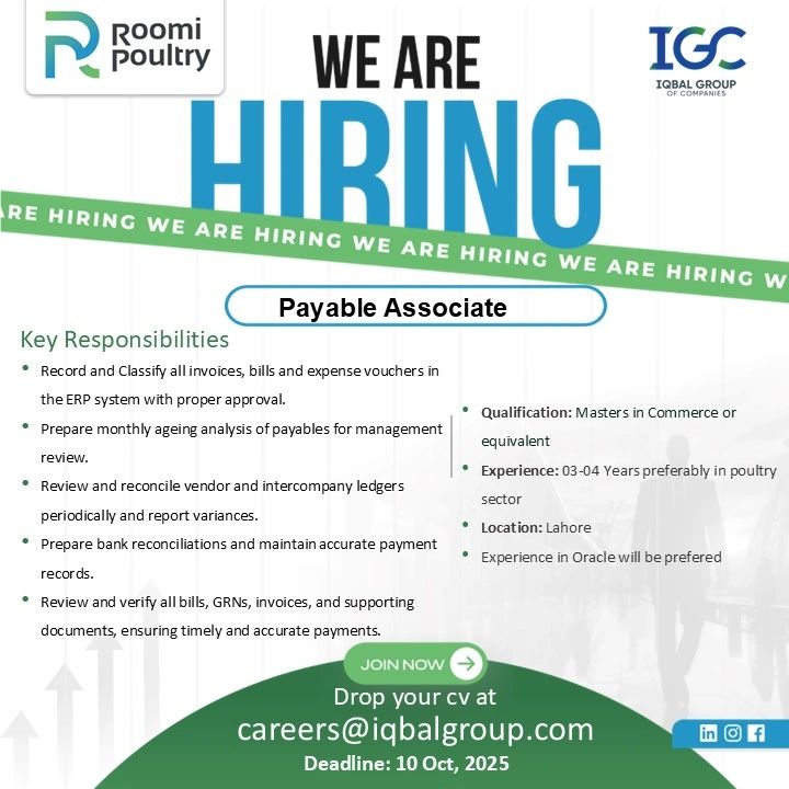 Roomi Poultry Pvt Ltd Jobs Payable Associate: