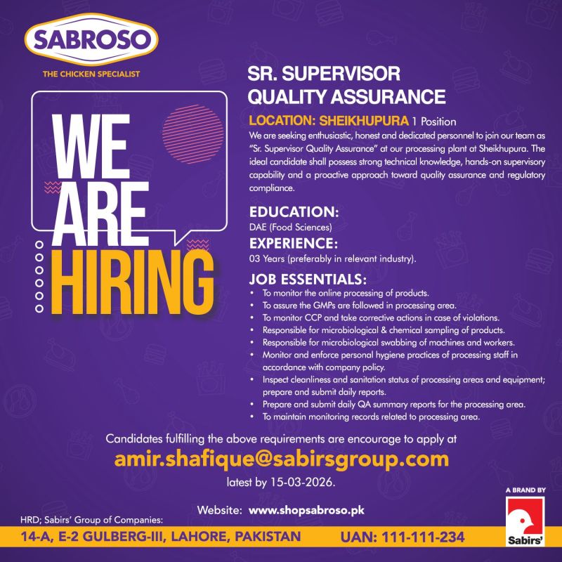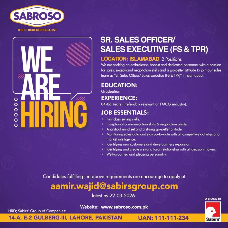 Sabroso Pakistan Jobs March 2026 1