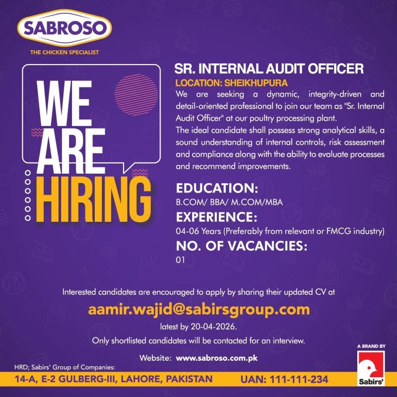 Sabroso Pakistan Jobs Sr Internal Audit Officer