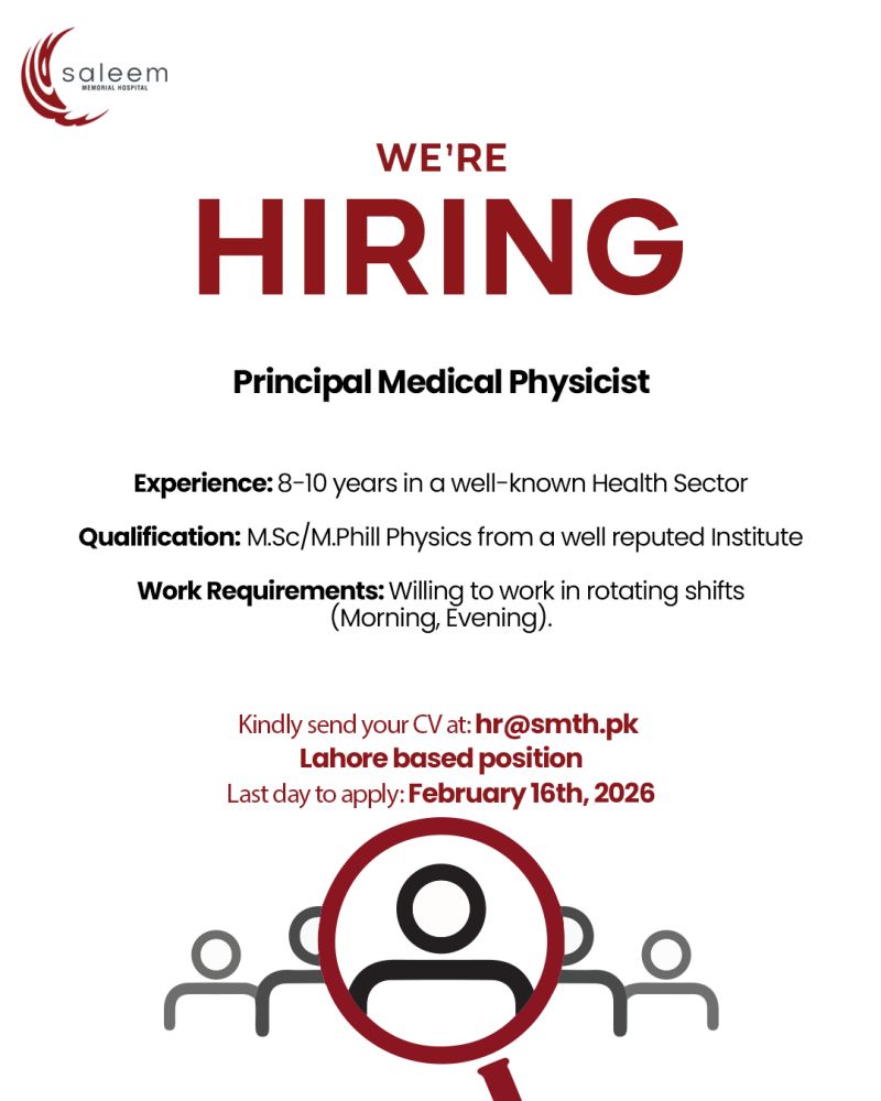 Saleem Memorial Hospital Jobs Principal Medical Physicist: