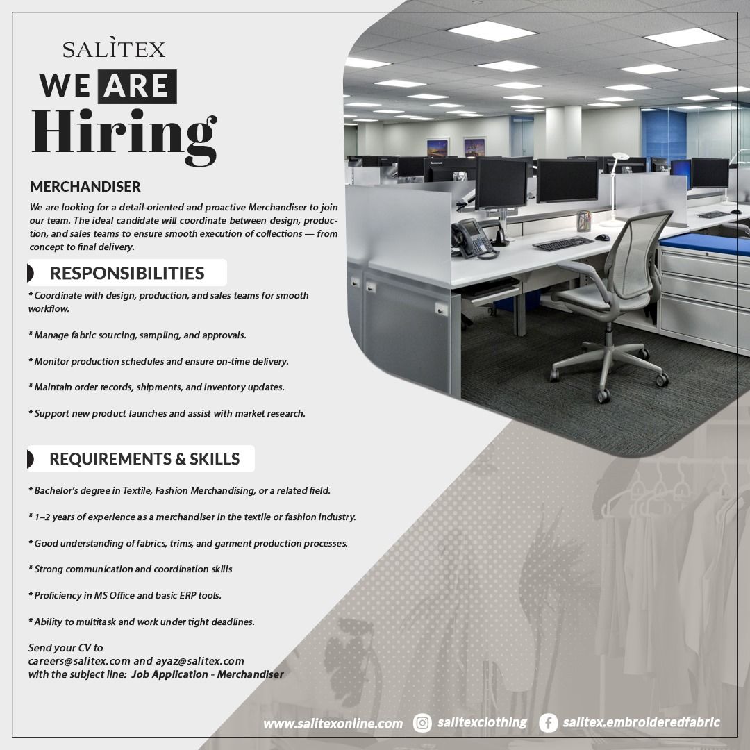 - 1-2 years of experience as a merchandiser in the textile or fashion industry.