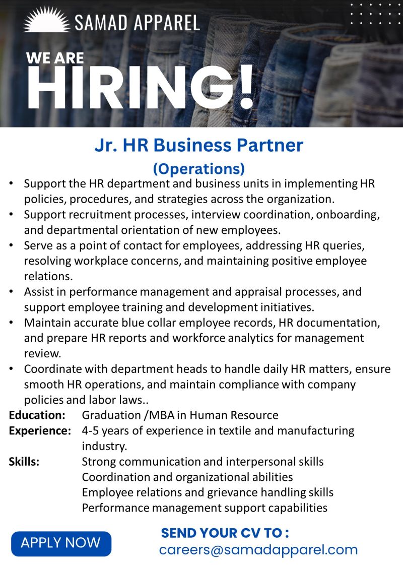 Samad Apparel Pvt Ltd Jobs March 2026