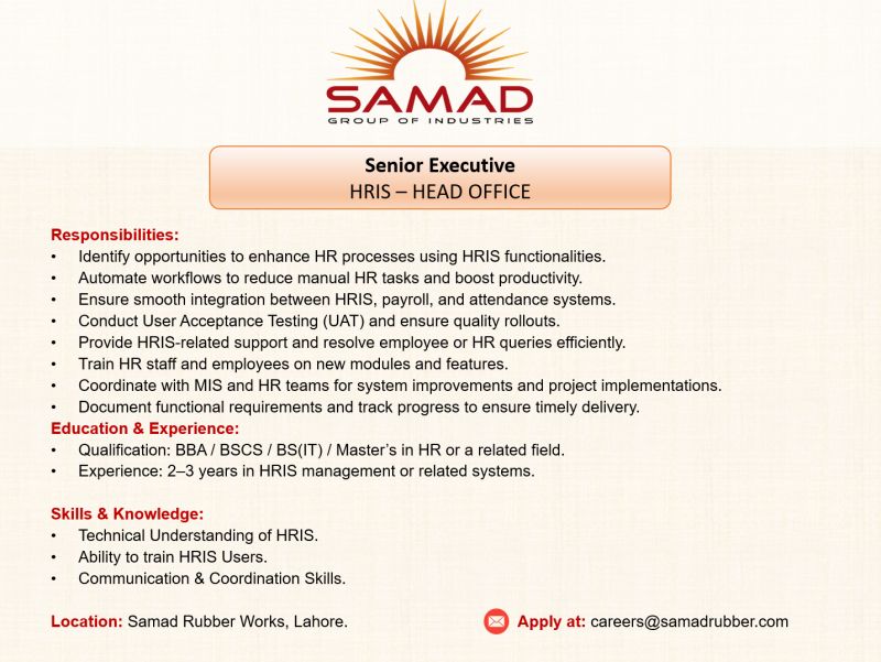 Samad Group Of Industries Jobs Senior Executive HRIS 1