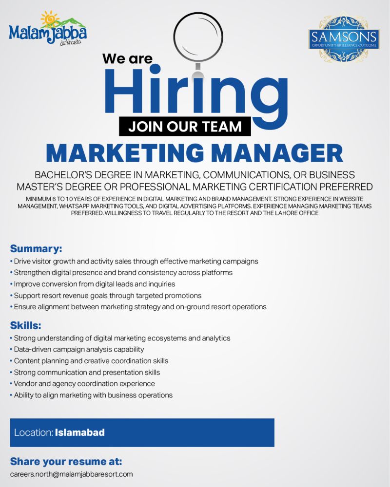 Samsons Group / Malam Jabba Ski Resort Jobs February 2026 3